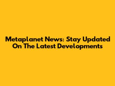 Metaplanet News: Stay Updated On The Latest Developments