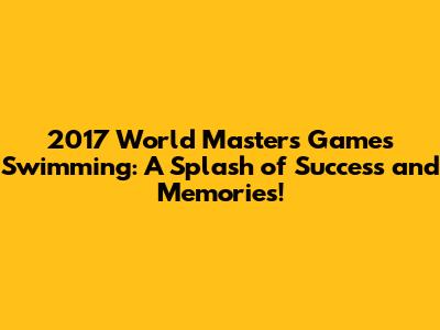 So, whether you're a seasoned masters swimmer or simply a fan of the sport, let the memories of the 2017 World Masters Games inspire you to stay active, pursue your dreams, and embrace the joy of swimming! Keep the spirit alive, keep swimming, and keep inspiring!