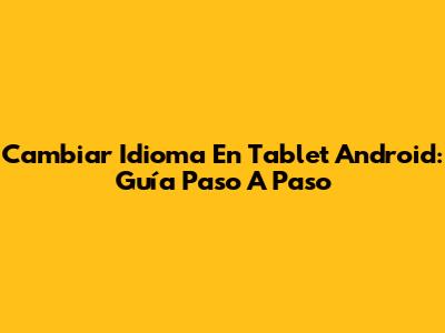 Cambiar Idioma En Tablet Android: Guía Paso A Paso