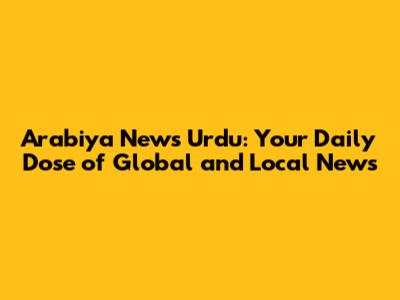 Hey everyone! If you're looking to stay informed about what's happening around the globe and right in your backyard, then Arabiya News Urdu is the place to be. Guys, in today's fast-paced world, getting accurate and timely news is super important, and this platform really steps up to the plate. Whether you're interested in politics, business, sports, or just want to catch up on the latest happenings, Arabiya News Urdu brings it all to you in a language that's accessible and engaging.