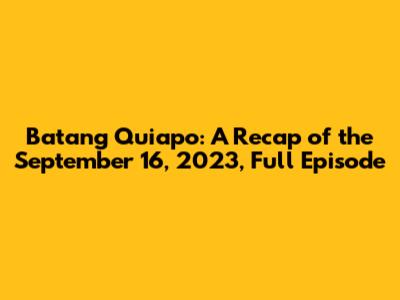 Hey guys, let's dive into the Batang Quiapo full episode from September 16, 2023! This episode was packed with drama, action, and all those things that keep us hooked. For those who missed it, or just want a refresher, I've got you covered. Get ready for a deep dive into the highlights, the twists, and turns that made this episode so memorable. Let's break down everything that went down, from Cardo's latest challenges to the evolving relationships of our favorite characters. So, grab some popcorn, and let's get started with this Batang Quiapo recap!
