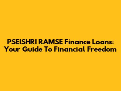 PSEISHRI RAMSE Finance Loans: Your Guide To Financial Freedom
