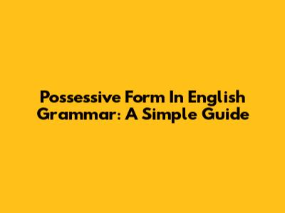 Possessive Form In English Grammar: A Simple Guide
