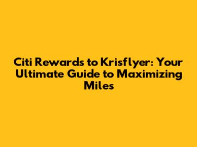 Citi Rewards To Krisflyer: Your Ultimate Guide
