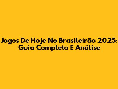 Jogos De Hoje No Brasileirão 2025: Guia Completo E Análise