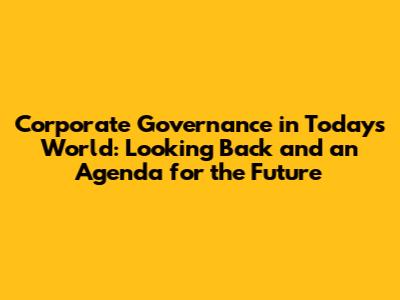 The Future of Corporate Governance: An Agenda for Tomorrow