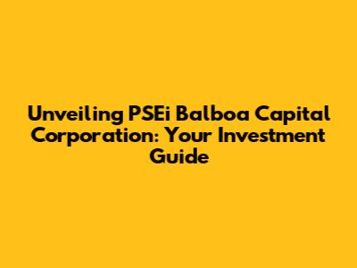 Unveiling PSEi Balboa Capital Corporation: Your Investment Guide