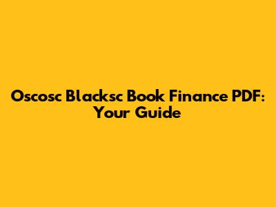 Oscosc Blacksc Book Finance PDF: Your Guide