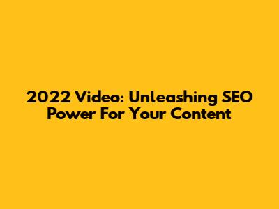2022 Video: Unleashing SEO Power For Your Content