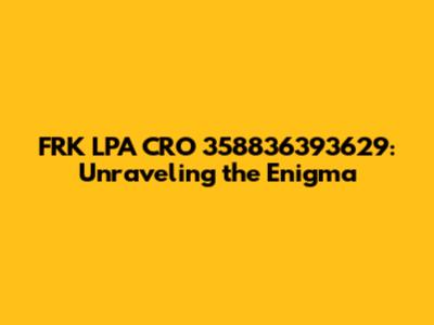 FRK LPA CRO 358836393629: Decoding The Mystery