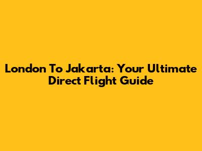 London To Jakarta: Your Ultimate Direct Flight Guide