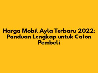 Hai guys! Siapa di sini yang lagi kepengen banget punya mobil baru, tapi budgetnya masih ramah di kantong? Nah, kalian pas banget nih nyasar ke artikel ini. Kita bakal bahas tuntas soal harga mobil Ayla terbaru 2022, lengkap dengan spesifikasi, fitur, dan pilihan terbaik yang bisa kalian pertimbangkan. Mobil Ayla ini emang jadi primadona banget di kalangan anak muda dan keluarga kecil karena ukurannya yang pas buat di perkotaan, irit bahan bakar, dan harganya yang bersahabat. Penasaran kan? Yuk, langsung aja kita bedah tuntas!