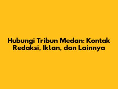Hubungi Tribun Medan: Kontak Redaksi, Iklan, Dan Lainnya