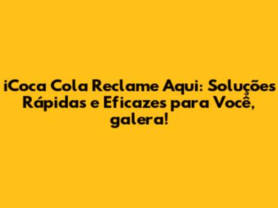 Entendendo o "iCoca Cola Reclame Aqui": Seu Canal Direto de Comunicação