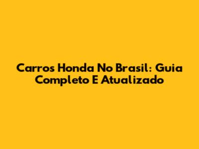 Carros Honda No Brasil: Guia Completo E Atualizado