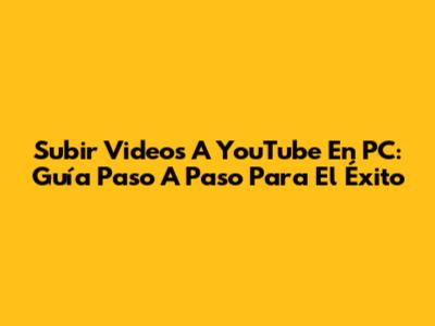 Subir Videos A YouTube En PC: Guía Paso A Paso Para El Éxito