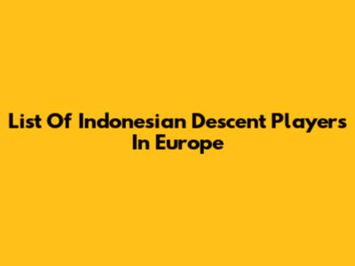 List Of Indonesian Descent Players In Europe