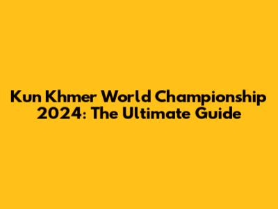 Kun Khmer World Championship 2024: The Ultimate Guide