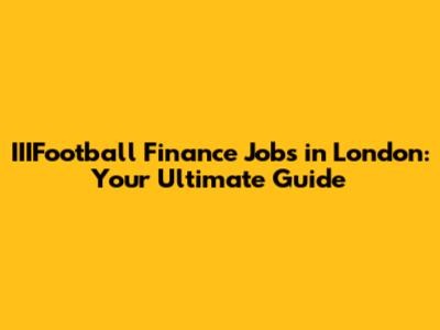 IIIFootball Finance Jobs In London: Your Ultimate Guide