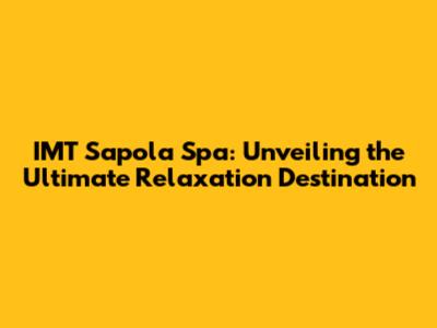 IMT Sapola Spa: Your Guide To Relaxation And Rejuvenation