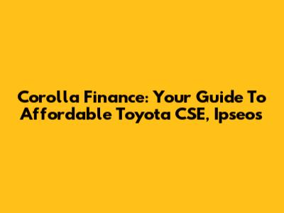 Corolla Finance: Your Guide To Affordable Toyota CSE, Ipseos
