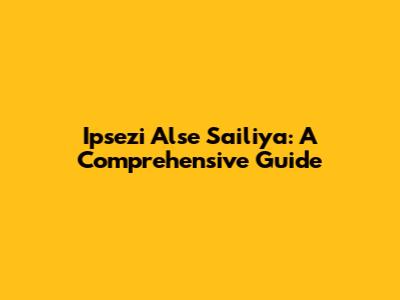 Ipsezi Alse Sailiya: A Comprehensive Guide