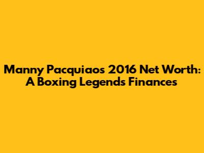 Manny Pacquiao's 2016 Net Worth: A Boxing Legend's Finances