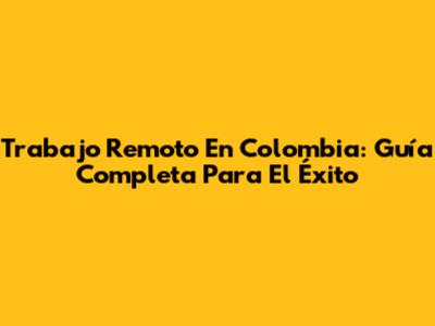 Trabajo Remoto En Colombia: Guía Completa Para El Éxito