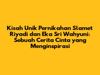 Pernikahan Slamet Riyadi dan Eka Sri Wahyuni adalah sebuah kisah cinta yang telah menarik perhatian banyak orang di Indonesia. Kisah mereka bukan hanya tentang cinta, tetapi juga tentang keteguhan hati, kesabaran, dan perjuangan. Pasangan ini telah menghadapi berbagai rintangan dalam perjalanan cinta mereka, namun mereka tetap bersatu dan saling mendukung. Mari kita telusuri lebih dalam kisah unik ini, yang sarat dengan pelajaran berharga tentang cinta dan kehidupan.
