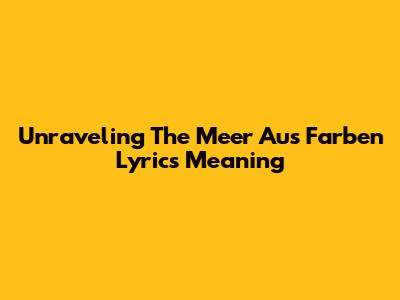 Unraveling The 'Meer Aus Farben' Lyrics Meaning
