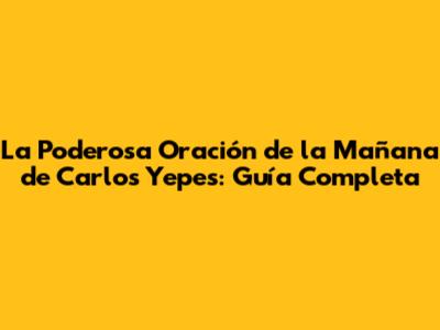 La Poderosa Oración De La Mañana De Carlos Yepes: Guía Completa