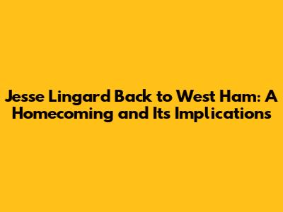 Hey guys! Let's dive into some exciting news in the football world! Jesse Lingard is back in the spotlight, and this time, it's about his potential return to West Ham United. This move has got the football community buzzing, and for good reason. Lingard's previous stint with the Hammers was nothing short of sensational, and his possible comeback is filled with anticipation. We're going to break down everything from his past successes to what this could mean for West Ham's future, the potential impact on the team, and what fans can expect. So, buckle up; it's going to be a fun ride!