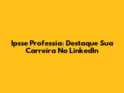 Ipsse Professia: Destaque Sua Carreira No LinkedIn