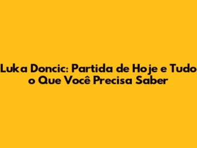 Agora, vamos ao que interessa: a partida de hoje! Para saber os detalhes sobre o jogo do Luka Doncic, como horário e onde assistir, é importante ficar atento às informações atualizadas. As datas e horários das partidas da NBA são definidos com antecedência, mas podem sofrer alterações devido a diversos fatores. Por isso, a maneira mais fácil de se manter informado é acompanhar as notícias esportivas e as redes sociais. Geralmente, as partidas são transmitidas por canais esportivos, como ESPN e TNT, e também por plataformas de streaming, como NBA League Pass.