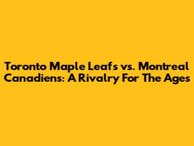 Maple Leafs Vs Canadiens: A Rivalry For The Ages
