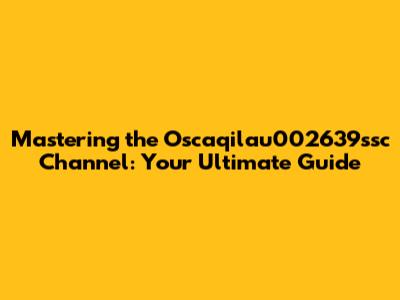 Mastering The Oscaqilau002639ssc Channel: Your Ultimate Guide