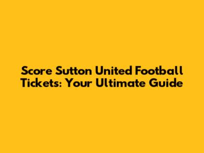 Score Sutton United Football Tickets: Your Ultimate Guide
