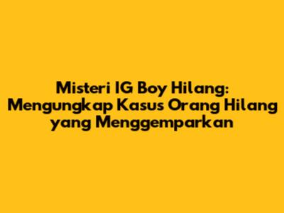 IG Boy Hilang, sebuah frasa yang menggema di jagat maya, kini menjadi sorotan utama dalam pemberitaan. Kasus orang hilang yang melibatkan seorang remaja yang dikenal sebagai IG Boy telah memicu rasa penasaran dan keprihatinan publik. Dalam artikel ini, kita akan menyelami lebih dalam mengenai misteri ini, mulai dari kronologi kejadian, spekulasi yang berkembang, hingga upaya pencarian yang sedang berlangsung. Mari kita bedah bersama kasus IG Boy hilang ini!