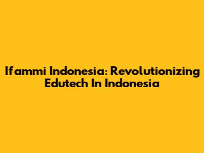 Ifammi Indonesia: Revolutionizing Edutech In Indonesia