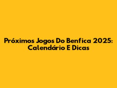 Próximos Jogos Do Benfica 2025: Calendário E Dicas