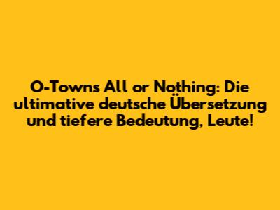 So, Leute, wir haben uns "All or Nothing" von O-Town vorgenommen, die Lyrics analysiert und euch die deutsche Übersetzung geliefert. Was können wir mitnehmen? Dieser Song ist mehr als nur ein Lovesong. Er ist eine Erkundung der extremen Emotionen, die mit Liebe einhergehen. Von der anfänglichen Hoffnung und Verletzlichkeit über die radikale Hingabe bis hin zur lähmenden Angst vor dem Verlust. O-Town hat hier einen Song geschaffen, der die wahre Essenz des Risikos in der Liebe einfängt. Es ist diese Alles oder Nichts-Mentalität, die den Song so zeitlos und relevant macht. Wir alle haben uns wahrscheinlich schon mal in einer Situation wiedergefunden, in der wir uns gefragt haben, ob wir alles wagen sollen oder lieber auf Nummer sicher gehen. "All or Nothing" erinnert uns daran, dass die größten Belohnungen oft mit den größten Risiken verbunden sind. Aber es erinnert uns auch an die Gefahr, uns selbst zu verlieren, wenn wir uns zu sehr auf eine einzige Person fixieren. Diese menschliche Erfahrung, diese emotionale Achterbahnfahrt, ist es, was "All or Nothing" zu einem unvergesslichen Hit macht. Es ist ein Song, der uns zum Nachdenken anregt, der uns mitfühlt und der uns zeigt, dass Liebe, in all ihren Facetten, etwas wirklich Mächtiges ist. Also, wenn ihr das nächste Mal diesen Song hört, denkt daran, was dahinter steckt: die ganze Bandbreite menschlicher Emotionen, die Tapferkeit, sich voll und ganz hinzugeben, und die unausweichliche Angst vor dem, was kommen mag. O-Town hat uns hier einen echten Schatz hinterlassen, einen Song, der uns noch lange begleiten wird. Bleibt authentisch, liebt tief und wagt es, alles zu geben – aber vergesst nie, auch auf euch selbst aufzupassen, okay? Bis zum nächsten Mal, Leute! Euer Musik-Guru.