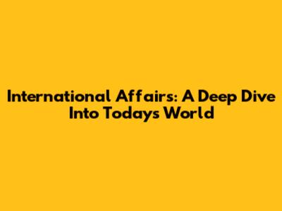 International Affairs: A Deep Dive Into Today's World