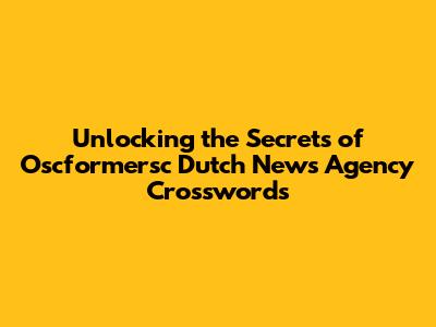 Hey puzzle enthusiasts! Are you ready to dive into the fascinating world of Oscformersc Dutch news agency crosswords? If you're anything like me, you love a good mental workout, and crosswords are just the ticket. They're not just fun; they're amazing for keeping your brain sharp and your vocabulary on point. Today, we're going to explore everything about these specific crosswords, from what makes them unique to how you can conquer them. So, grab your favorite pen, maybe a cup of coffee, and let's get started on this exciting journey!