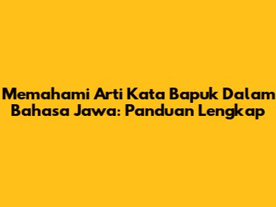 Memahami Arti Kata Bapuk Dalam Bahasa Jawa: Panduan Lengkap