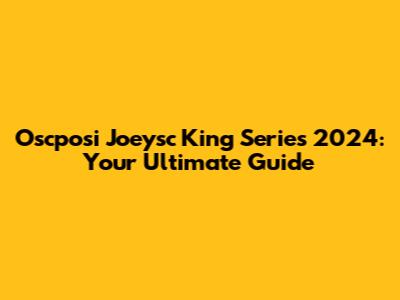 Oscposi Joeysc King Series 2024: What You Need To Know