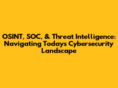 OSINT, SOC, & Threat Intel: The Cybersecurity Landscape