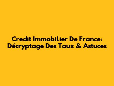 Credit Immobilier De France: Décryptage Des Taux & Astuces