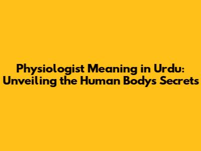 Physiologist Meaning In Urdu: A Comprehensive Guide