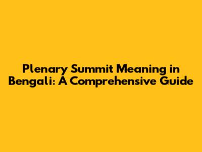 Plenary Summit Meaning In Bengali: A Comprehensive Guide