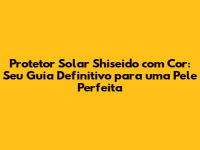 Protetor Solar Shiseido Com Cor: Guia Completo Para Uma Pele Radiante